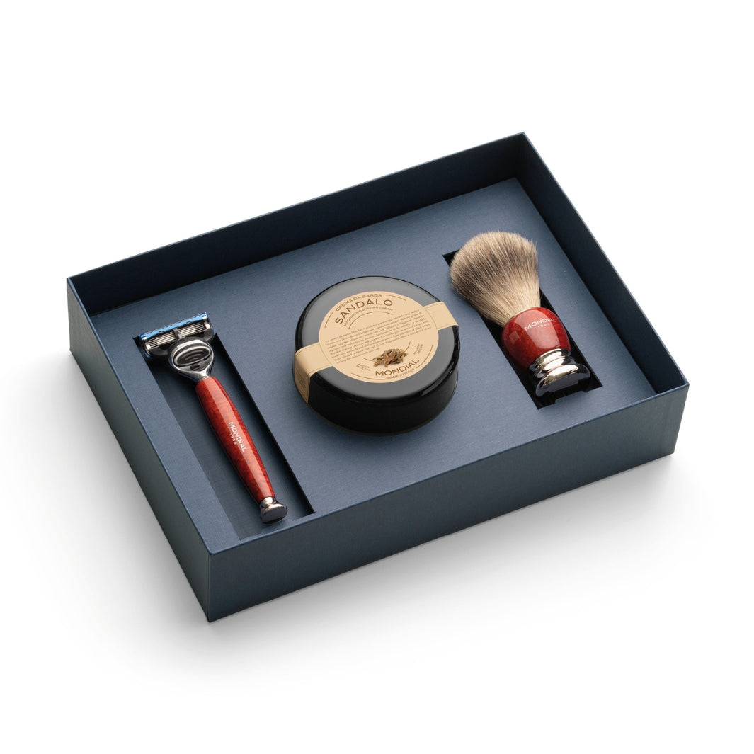 The three-piece wet shaving gift set from Mondial 1908 is a special gift to any man looking to redefine the expectations for his daily shave with high-quality tools from our 'Beethoven' collection along with one of our ancient recipe shaving creams.